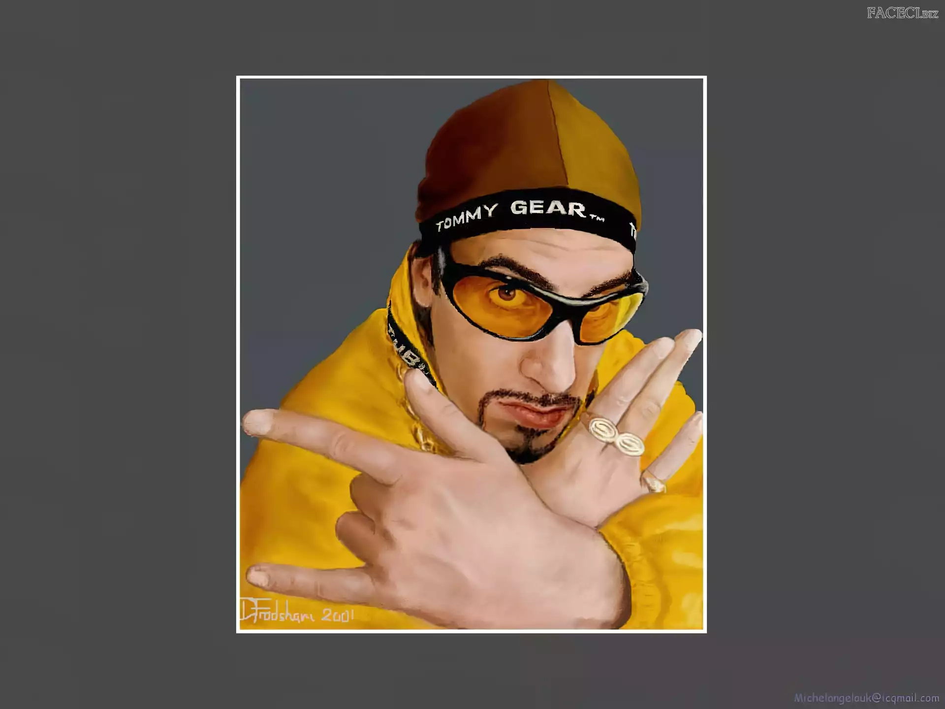 Sasha Baron Cohen, gruby łańcuch Sasha Baron Cohen, żółty strój Sasha Baron Cohen, zdjęcia Sasha Baron Cohen, niebieski dres złoty strój, Sasha Baron Cohen, okulary Sasha Baron Cohen, ali g Sasha Baron Cohen, borat